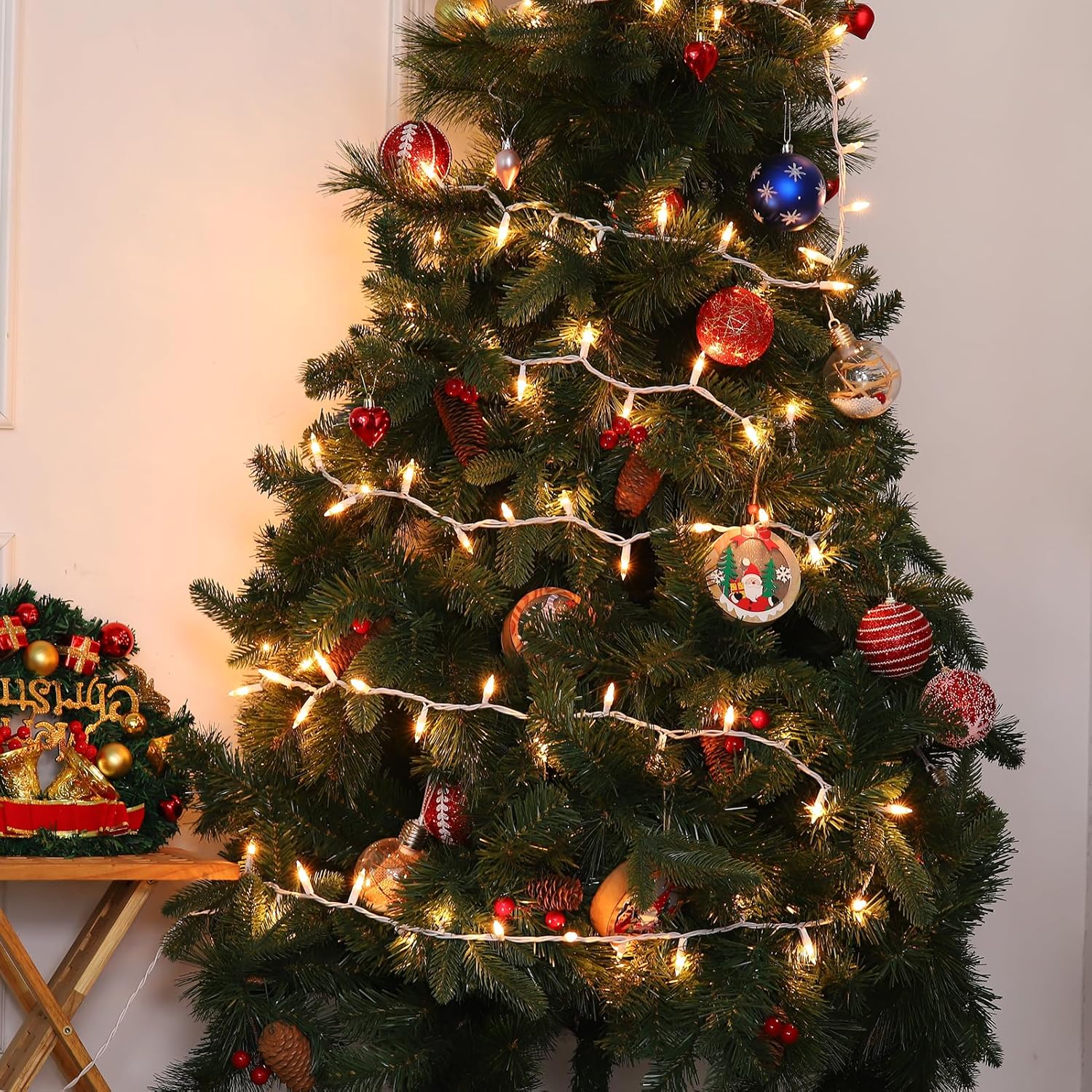 Christmas Lights 100 Count Clear White Wire UL Certified Connectable Warm White String Lights for Christmas Tree,Garland,Home,Patio, Wedding,Party,Festival Decor
